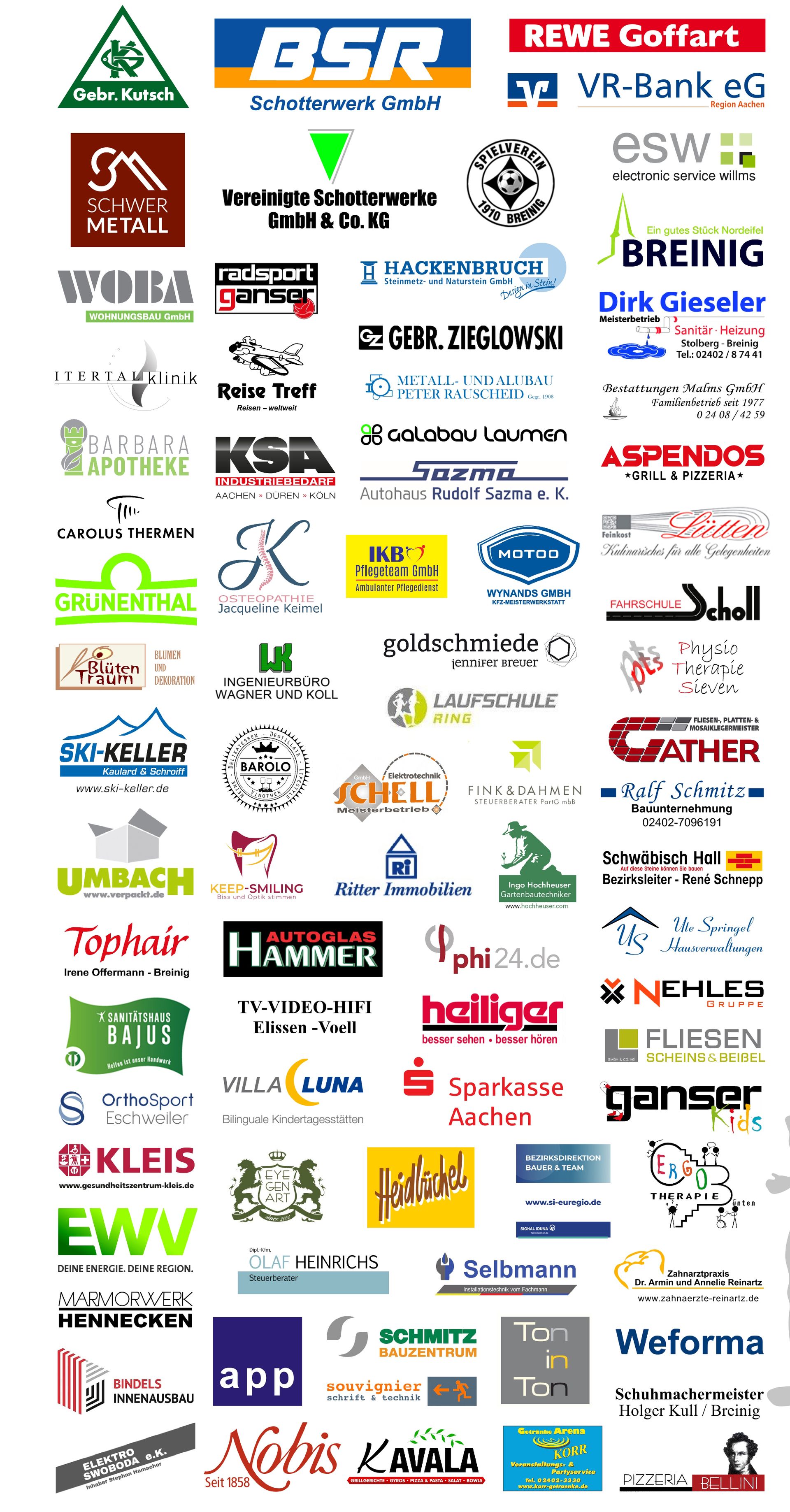 Ohne die Tatkräftige Unterstützung aller unserer Sponsoren und Helfer wäre eine Veranstaltung wie "Breinig läuft!" nicht möglich. Wir möchten uns hiermit ganz herzlich dafür bedanken.